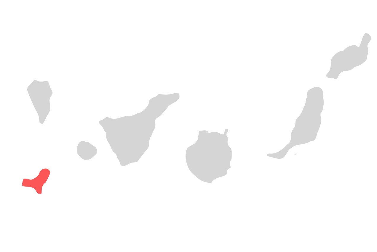 La más occidental y meridional de las Islas Canarias, declarada Reserva de la Biosfera por la UNESCO por su rica diversidad biológica. Conocida por su impresionante geografía volcánica, montañas, acantilados, valles y playas de arena negra.